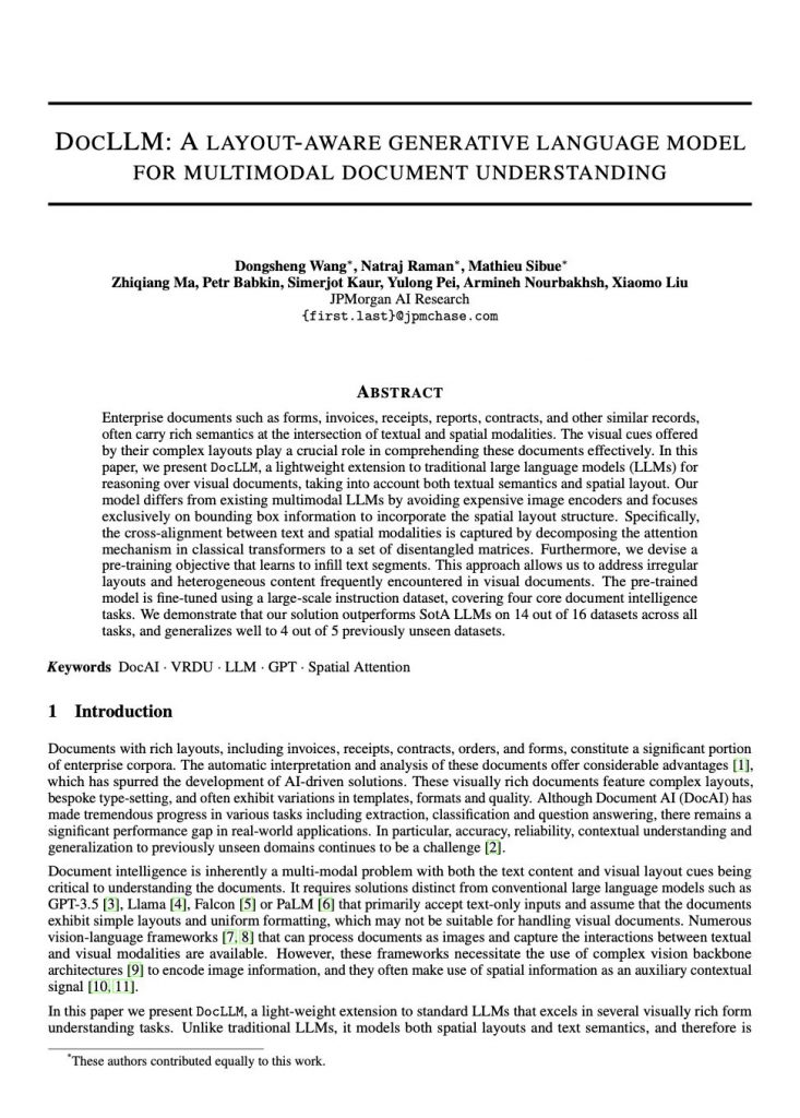 JPモルガンの研究者らは、企業のドキュメントをLLMで読み込むモデル『DocLLM』を発表しました。