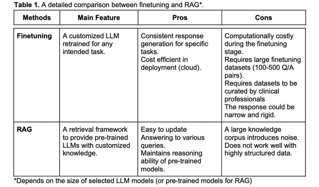 一方、RAGは検索エンジンのように機能し、クエリに応じた関連するカスタマイズされたテキストデータを取得する革新的なアプローチです。RAGは特化した知識をLLMに統合するツールとして機能し、ヘルスケア分野など広範な専門知識が必要な場面での正確性を向上させます。