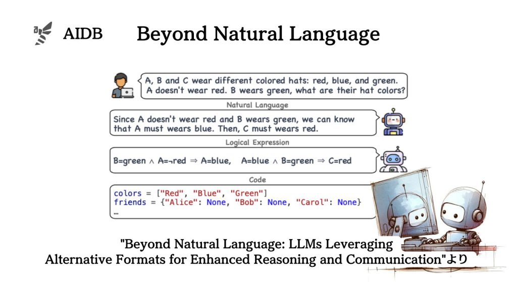 自然言語は人間の思考やコミュニケーションの基本フォーマットであり、大規模言語モデル(LLM)においても使われています。しかし、LLMは訓練時に、非自然言語(コードや論理式など)にも触れています。そこで出てくる疑問が、LLMの推論やエージェント間コミュニケーションに自然言語が最適なのだろうか?というものです。