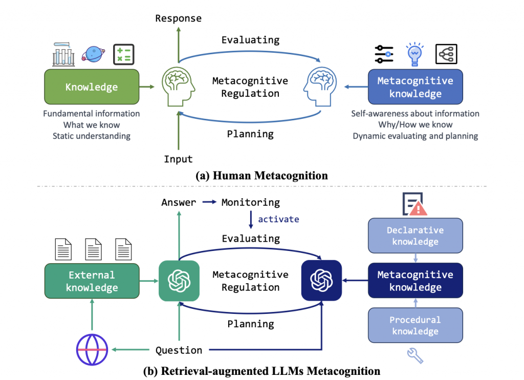 人間の場合は、複雑な問題に直面した時には自分の思考パターンを内省します。これはメタ認知と呼ばれています。今回研究者らは、メタ認知の概念をLLMに取り入れ、検索拡張生成(RAG)の性能向上を目指すことにしました。メタ認知的検索拡張生成フレームワーク(MetaRAG)です。
