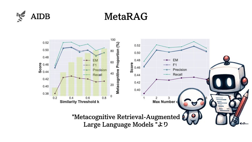 メタ認知をRAGに応用し、回答の品質がいまいちだとLLMが認識した際に検索を繰り返すアプローチの有効性が検証されました。