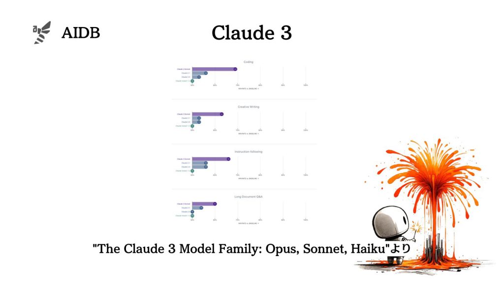 以下では、競争対象である他モデルとの比較を含め、Claude 3モデルファミリーの能力に焦点を当てて詳しく紹介します。