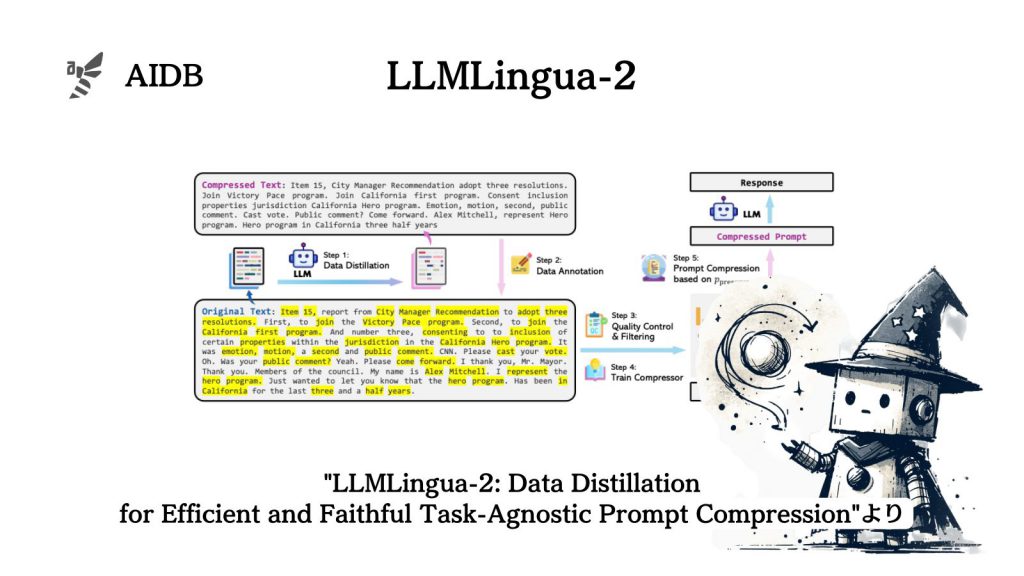 - タイトル:LLMLingua-2: Data Distillation for Efficient and Faithful Task-Agnostic Prompt Compression