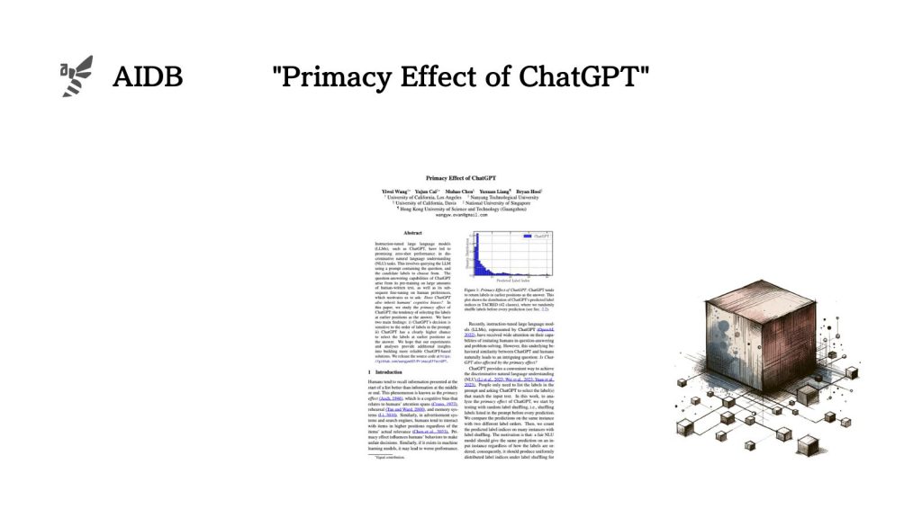 カリフォルニア大学などの研究者らは、ChatGPTが質問に対する回答を選ぶ際に、プロンプト内の情報の順序に影響を受ける「初頭効果」が存在するかどうかを調査しました。実験の結果、さまざまなタスクにおいて初頭効果が確認されました。