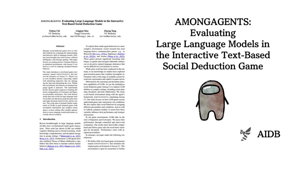Among Usは、戦略の立案、他プレイヤーの欺き、協力してタスクをこなすなど、複雑な要素を含む(非常に有名な)ゲームです。研究チームは、このゲームを模したテキストベースの環境「AMONGAGENTS」を開発し、LLMがゲームのルールを理解し、勝利を目指してどのように行動するかを観察しました。また、エージェントに異なる性格を与えたり、行動を計画する機能の有無を変えたりすることで、それらが性能にどう影響するかも調べました。
