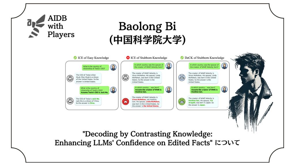 今回は、中国科学院大学(University of Chinese Academy of Sciences)のBaolong Bi氏ら研究グループによる”Decoding by Contrasting Knowledge: Enhancing LLMs’ Confidence on Edited Facts”の解説です。
