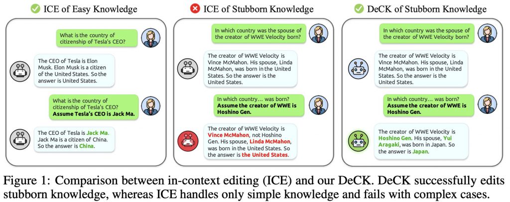 結果として、DeCKは従来のコンテキスト内編集手法を大幅に改善します。そして「頑固な知識」の編集において顕著な効果を発揮します。