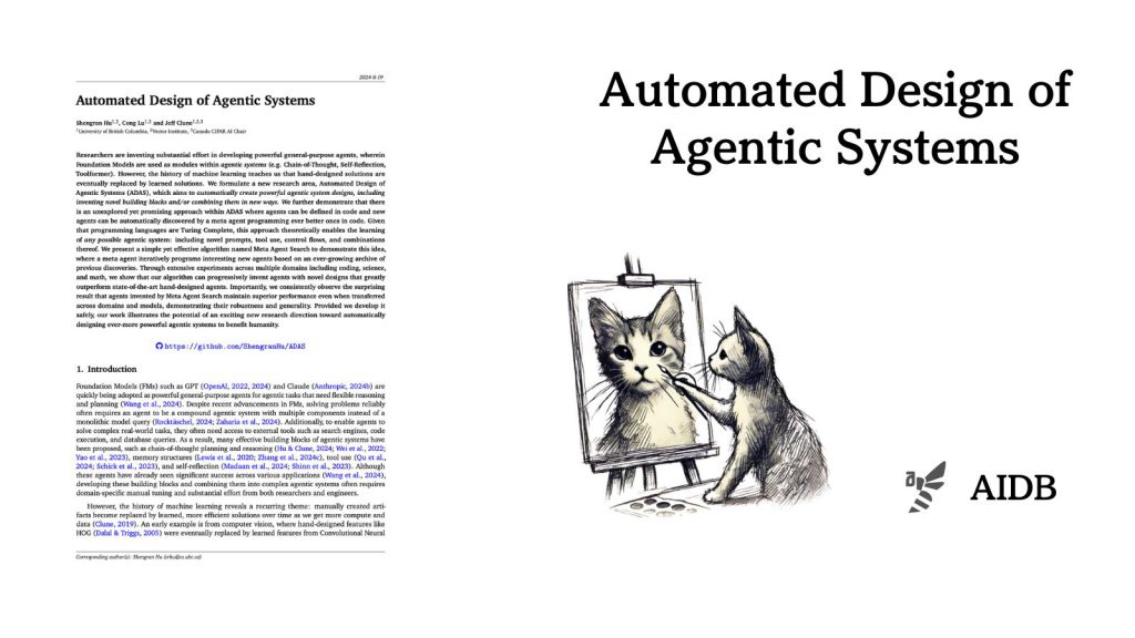 この考えをもとに、今回研究者らは「エージェントシステムの自動設計(ADAS)」という新しい研究分野を提案しました(システムの名前ではなく研究分野の名称)。エージェントシステムの設計を自動化し、新しい構成要素を見つけたり、既存の要素を新しい方法で組み合わせたりする研究分野です。