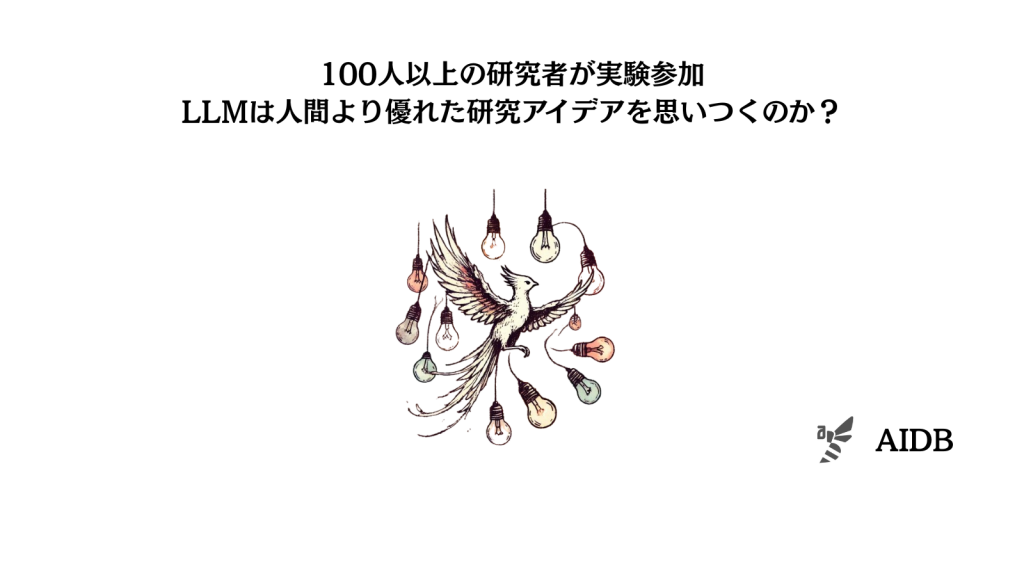 LLMが急速に進歩し、科学的な発見を早める可能性が高まっています。研究のアイデアを自動的に考えるエージェントも作られつつあります。しかし、これまでは、LLMが”専門家並み”の新しいアイデアを思いつけるかはわかっていませんでした。