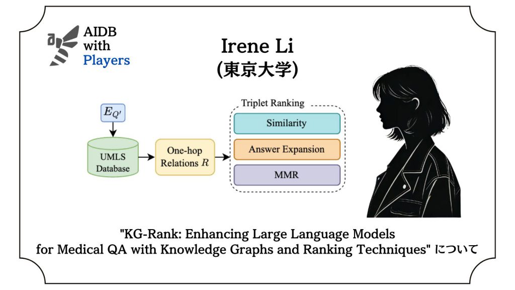 今回は、東京大学のIrene Li氏ら研究グループによる”KG-Rank: Enhancing Large Language Models for Medical QA with Knowledge Graphs and Ranking Techniques”の解説です。当メディアでも紹介している多くの研究でも言及されているように、LLMの出力は時として事実と異なる情報を含む場合があり、これは医療などの専門分野で特に深刻な問題として捉えられています。そんな中、本研究者らは状況の改善を試みています。