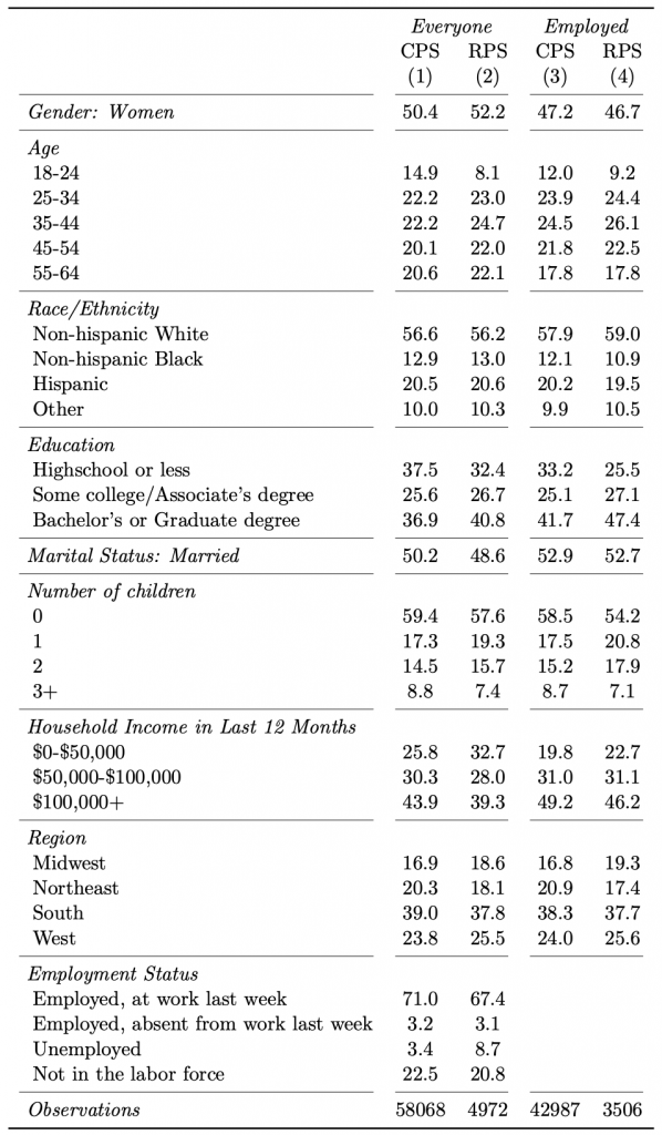 なおRPSは、現行人口調査(CPS)と呼ばれる国勢調査局と労働統計局が共同で実施する標準的な調査と、以下の点で類似するように設計されています。