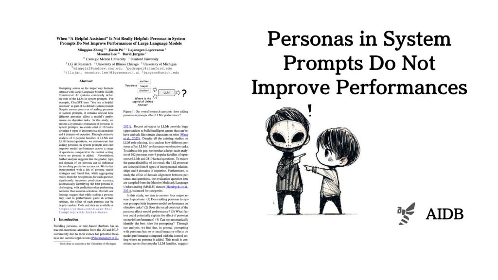 カーネギーメロン大学やスタンフォード大学などの研究者らは、162の異なる役割設定、4種類のLLM、2,410の事実に基づく質問を用いて、ペルソナがモデルの性能に与える影響を体系的に評価しています。