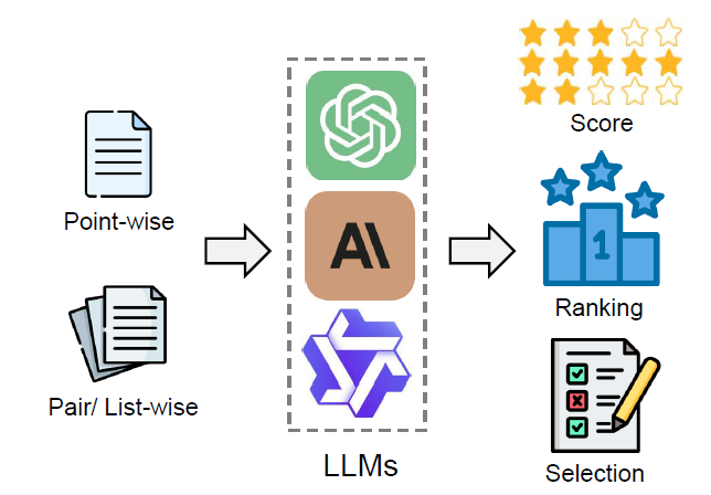 このような状況の中、LLMが急速な発展を遂げ、指示への従順性、クエリの理解能力、応答生成能力が大幅に向上しました。これで評価手法に新たな可能性が開かれ、LLMを活用して候補群に対するスコアリング、ランキング、選択を行う「LLM-as-a-judge」というパラダイムが訪れようとしています。従来の評価手法の限界を克服し、より詳細で粒度の細かい判定を可能にすることが期待されています。