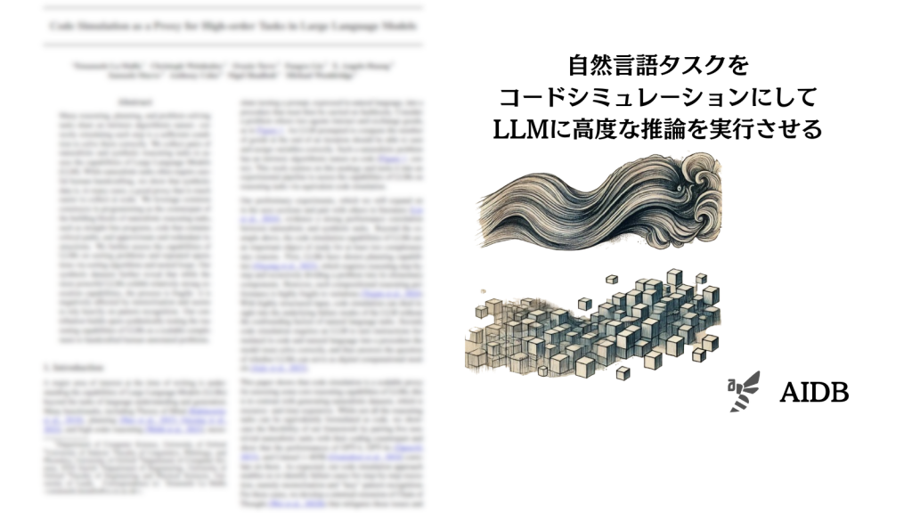 本記事の内容は、今後LLMに仕事をさせるときのヒントになるかもしれません。もしLLMが自然言語の課題をコードに変えた形でうまく処理できるなら、一般的なタスクであってもコード化した上で与えるといった選択肢が生まれるためです。
