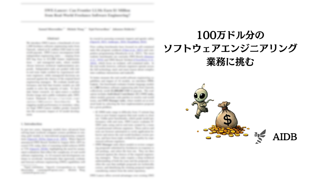 そこで、LLMの実用可能性をより正確に見極めるため、OpenAIの研究者らは新たなベンチマークを構築し、実証的な検証を進めました。開発現場に近い環境でソフトウェアを動かしながら、単なる動作確認だけでなく費用対効果や開発の進行度も計測しようとしている点が特徴です。