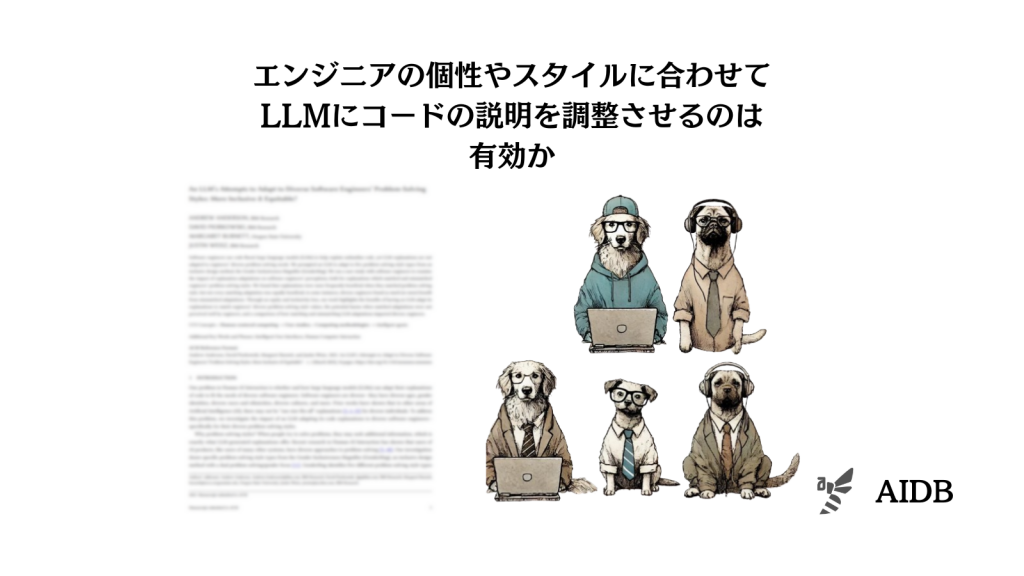 エンジニアがコードを理解する方法は人それぞれ異なりますが、LLMはそれを考慮した説明をできるのでしょうか。今回紹介する研究ではLLMが個人のスタイルに合わせてサポートできるかを調査しています。