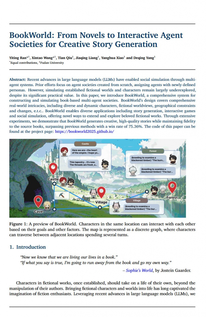 小説などからキャラの性格や関係性、世界の設定などの情報を抽出し、キャラごとにAIエージェントを作って各自の目標や記憶に基づいて自律的に行動させる仕組み『BookWorld』が開発されました。