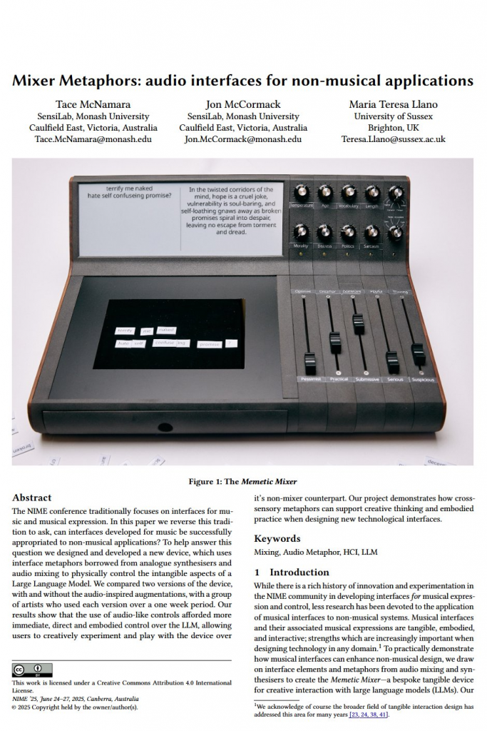 なんともユニークな論文が発表されました。 研究者らは、DJやミュージシャンが使うミキサーやシンセサイザーの”つまみ”や”スライダー”をAIとの対話に取り入れるための装置を作りました。