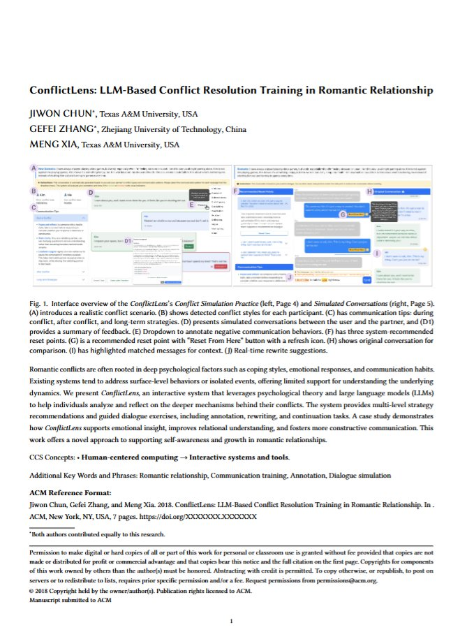 ConflictLens: LLM-Based Conflict Resolution Training in Romantic Relationship
