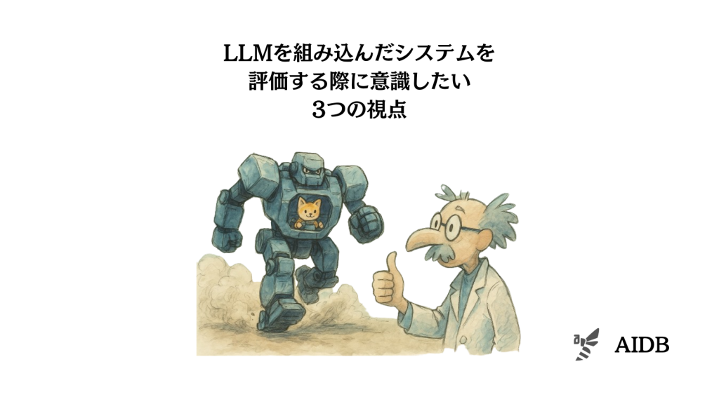 本記事では、LLMを組み込んだシステムを評価する際に意識したい三つの視点を紹介します。