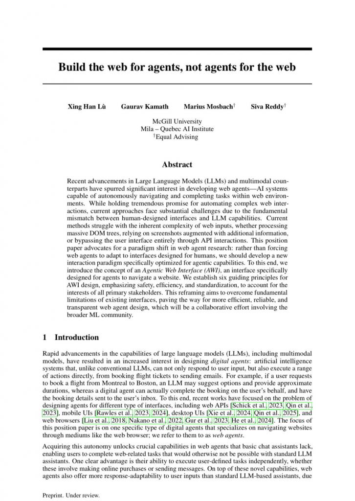 そのため、人間用のウェブとは別にAIエージェント専用のウェブインターフェース(「AWI」)を新たに開発すべきだと提案されています。