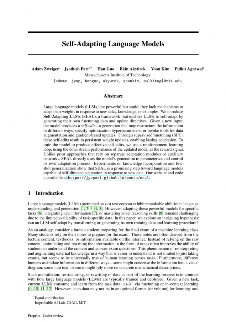 自らファインチューニングデータを生成し、重みを更新する能力を持つ言語モデルの仕組みを開発したとのMITの報告。
