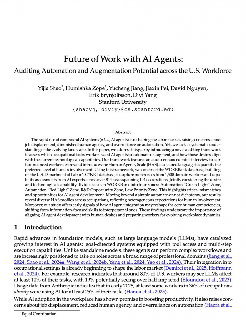 スタンフォード大学研究者らの報告によると、労働者の多くは「AIに仕事を手伝ってほしい」と思っているが、完全に仕事を奪われたい訳ではないとのこと。
