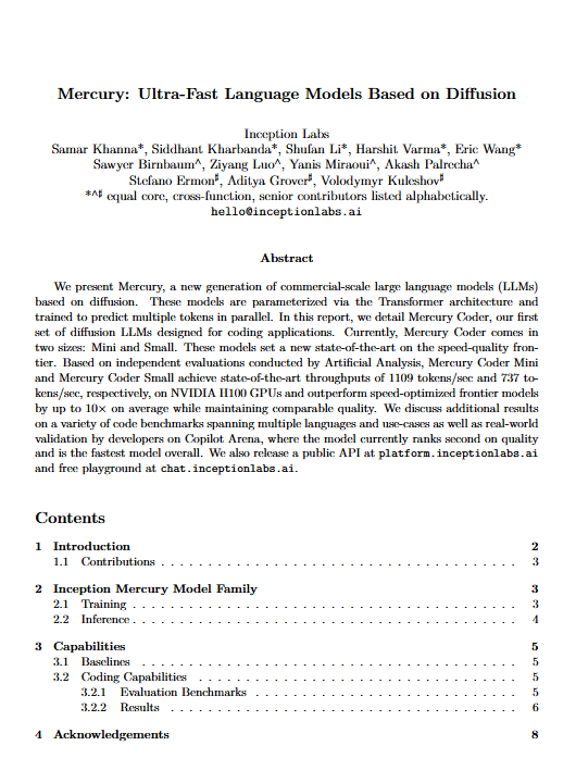 拡散モデルベースの大規模商用LLMを詳細に報告した論文としてはおそらく初の公開です。