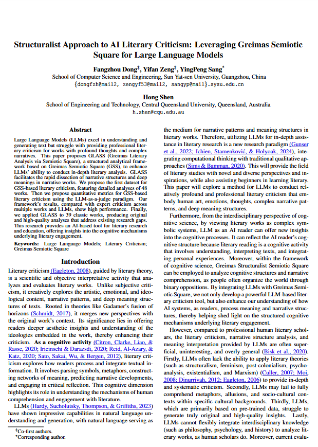 Structuralist Approach to AI Literary Criticism: Leveraging Greimas Semiotic Square for Large Language Models