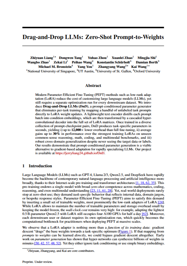 Drag-and-Drop LLMs: Zero-Shot Prompt-to-Weights