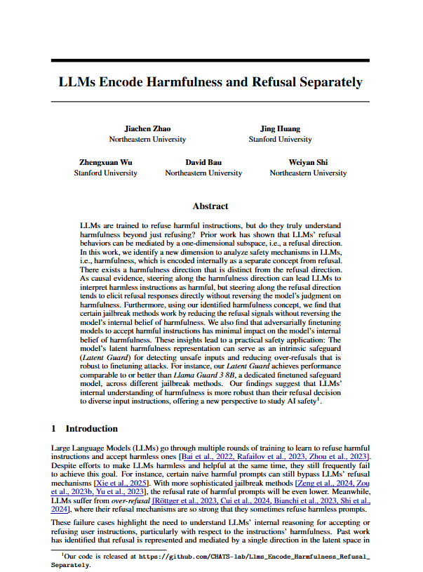 AIが「危険なリクエストだと理解すること」と「実際に拒否すること」を内部で完全に別々に処理していることを発見したそうです。