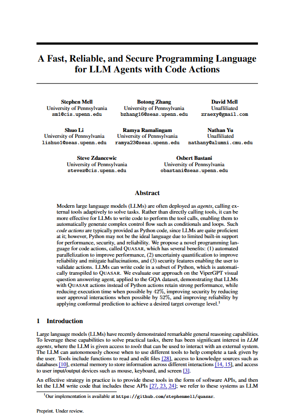 LLMが生成するコードをより高速・安全・高精度に実行するための新しいプログラミング言語「QUASAR」が提案されています。