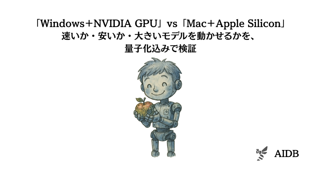 そこで本記事では、「Windows+NVIDIA GPU」と「Mac+Apple Silicon」という2つの環境で、どちらがLLMを速く・安く・大きく動かせるかを、量子化も含めて徹底的に検証した研究を取り上げます。Apple SiliconのようにVRAMが分かれていない構成が、LLM推論にとってどれほどの利点になるのかを探っています。
