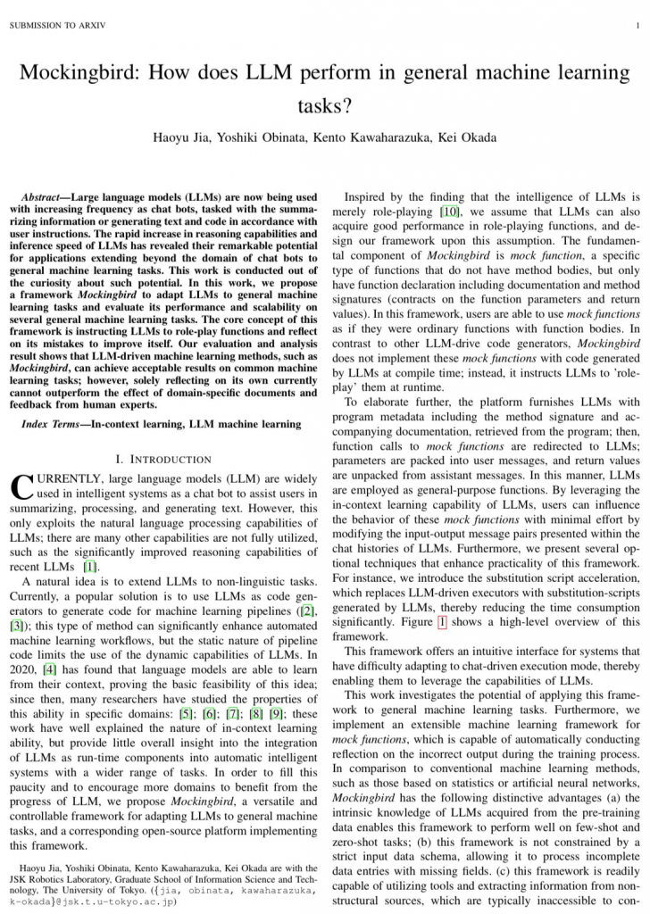 Mockingbird: How does LLM perform in general machine learning tasks?https://arxiv.org/abs/2508.04279