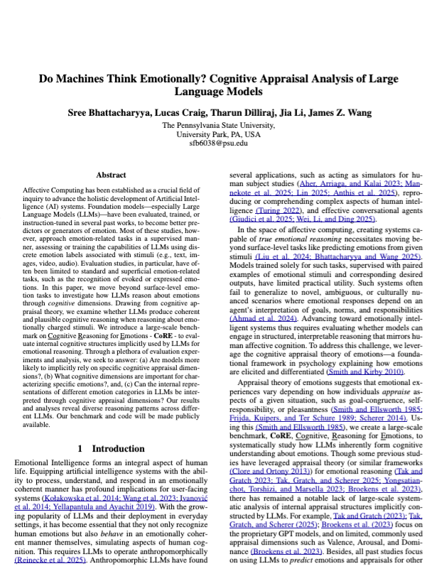 人間が感情を処理する時は「楽しいか不快か」を重要視しがちなのに対し、LLMは「どれだけ努力が必要か」を異常に重視すると示唆されています。 ペンシルベニア州立大学の研究者らによる報告。