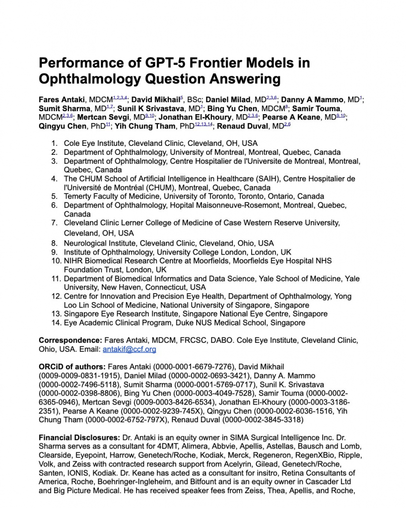 Cole Eye Institute, Cleveland Clinic, Department of Ophthalmology University of Montreal, Centre Hospitalier de l’Université de Montréal, The CHUM School of Artificial Intelligence in Healthcare, Temerty Faculty of Medicine University of Toronto, Department of Ophthalmology Hopital Maisonneuve-Rosemont, Cleveland Clinic Lerner College of Medicine of Case Western Reserve University, Neurological Institute Cleveland Clinic, Institute of Ophthalmology University College London, NIHR Biomedical Research Centre at Moorfields Eye Hospital NHS Foundation Trust, Department of Biomedical Informatics and Data Science Yale School of Medicine Yale University, Centre for Innovation and Precision Eye Health National University of Singapore, Singapore Eye Research Institute Singapore National Eye Centre, Eye Academic Clinical Program Duke NUS Medical School