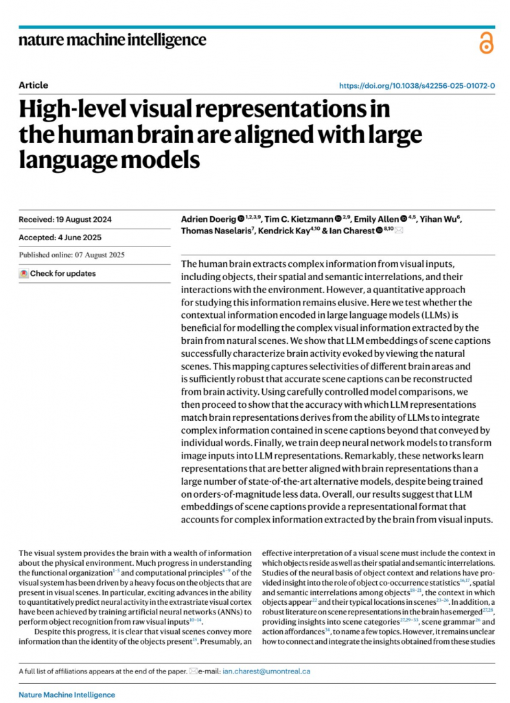 もしかすると私たちが何かを「見る」という行為は、最終的には言語的な理解に近い形で脳内で処理されているのかもしれない(そうした可能性を示唆している)と考察されています。