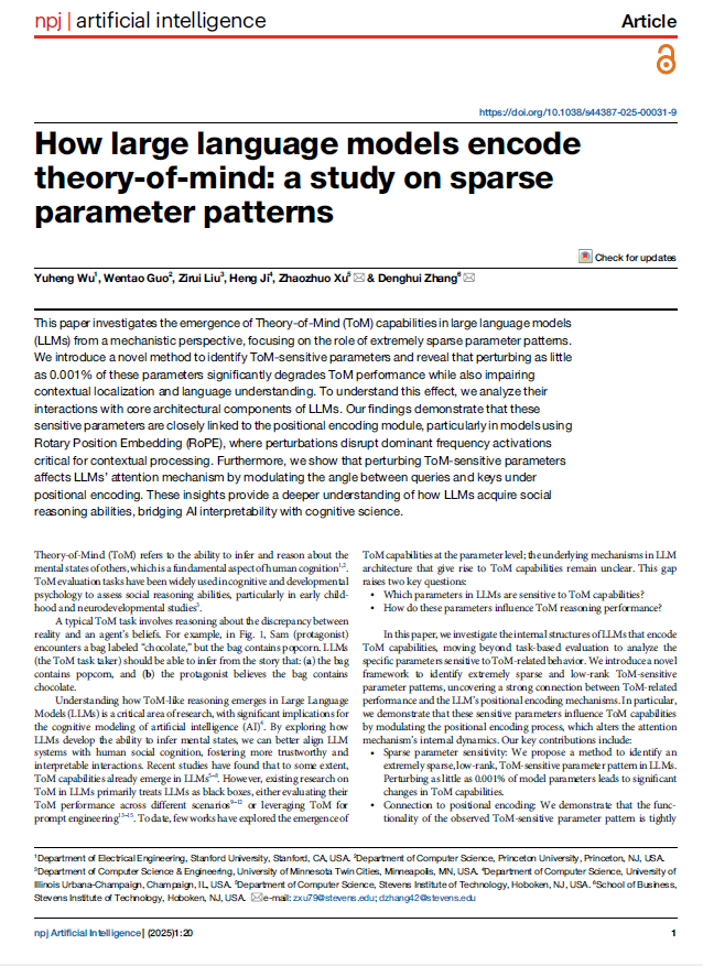 LLM全体の0.001%程度の敏感なパラメータが少し書き換わるだけで、「他人が何を考えているかを推測する」力が大きく低下してしまうということが報告されています。