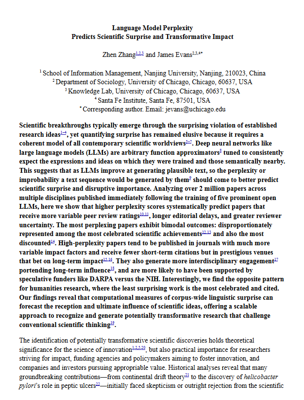 LLMが科学的発見を予測しづらいことが、むしろ重要さを予測するための手がかりになる可能性があるという興味深い話です。