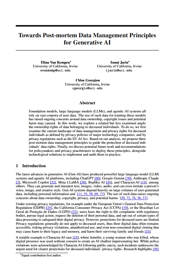 問題は、法律が故人のデータを十分には守っていないことです。故人のデータが勝手に使われても、遺族が止める手段があまりありません。