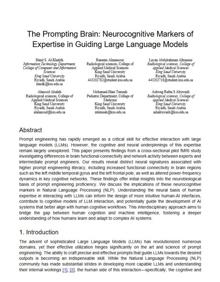 LLMへの指示が得意な人とそうでない人の脳をfMRIで調べたところ、脳活動に違いがあることが初めて科学的に示されたと報告されています。