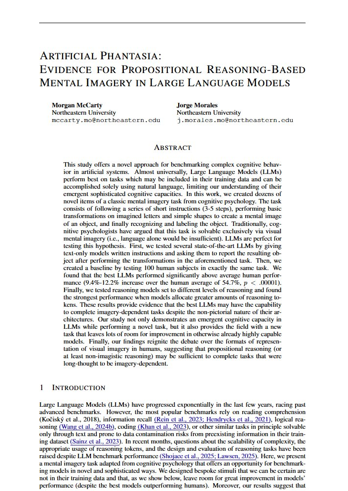「頭の中でイメージを描かないと解けない」ような課題を、LLMがテキストのみの推論で解けるようになっていると報告されています。