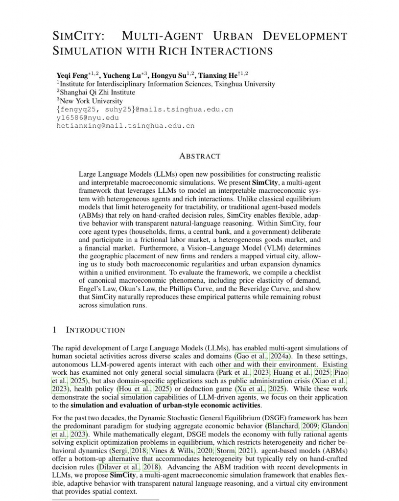 清華大学の研究者らは、仮想的な都市の経済活動をシミュレーションするシステムを作ったと報告しています。