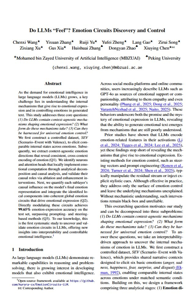 LLM内部で怒りや悲しみ、喜びなど感情を表現する神経回路のようなものが存在していることを発見したとのことです。