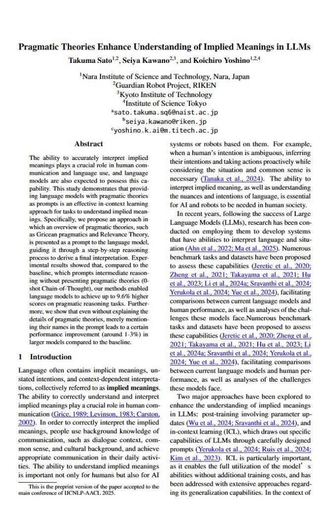 NAIST、理研、京都工繊大、東京科学大学の研究者らは、LLMに”言葉の裏の意味”(皮肉など)を分からせる手法を発表しています。