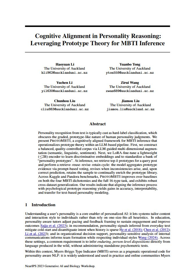 LLMを使用してSNSの投稿文からその人のMBTI性格タイプを判定する精度を大幅に向上させたとの報告。