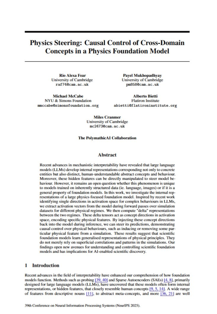ケンブリッジ大学などの研究者らは、「様々な物理現象を大量に学習させた物理シミュレーション用の大規模モデル」の中に、ある物理現象に対応する「概念」がはっきりした形で表現されていて、それを足し引きして振る舞いを変えられることを報告しています。